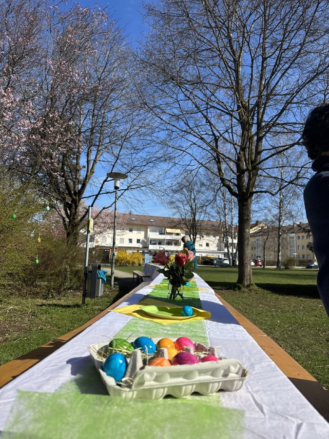Am 10. April 2023 fand, nach 2 Jahren Pause, unsere lääängste Osterfrühstückstafel Schongaus wieder statt. Zusammen mit dem Support Team BrahmsGarten konnten wir einen kurzweiligen Ostermontag ausrichten und bei bestem Wetter strahlten die Erwachsenen wie auch die Kinder. Letztere aber vor allem deswegen, weil auch der Osterhase in Lebensgrösse vorbeischaute. Es war ein rundum gelungenes Fest.